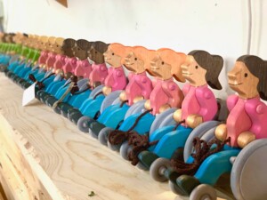Meet Michael and Judy! LARK Toys has introduced two new wheelchair pull toys to their original toy collection. The Michael and the Judy are wooden toys with wheels that can be pulled along on the ground with a long string.