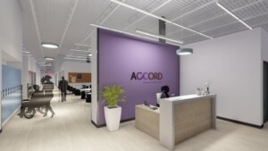 This summer Accord’s admin operations and day service programs will be moving into two new facilities! With this move we’ll be able to support over 300 individuals and their families within our day service programs. The new sites will feature new and updated program areas designed to help the people we support learn important life skills in volunteering, recreation, health and wellness, personal empowerment, art, hobbies, and more.
